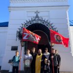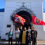 После молебна священник освятил водой знамена молодежного казачьего клуба «Пересвет», напомнив ребятам историю мирской жизни брянского боярина, после умелого воина – Александра Пересвета, который избрал иноческий путь, обучаясь монашеству у преподобного Сергия Радонежского.